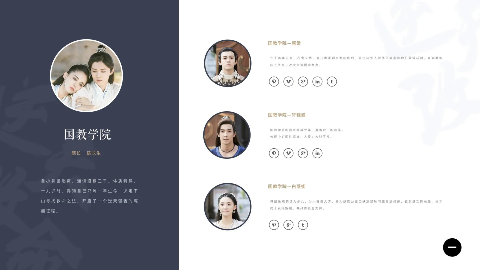 很多人在製作團隊介紹頁的時候,常常會忽略頭像選用的統一性,這一點你一定要注意,比如下圖的展示就是個例子,如果你要選用組合頭像,要麼選擇同樣的填充形式,要麼,就把核心主體單獨拿出來進行突出展示,不要亂用。