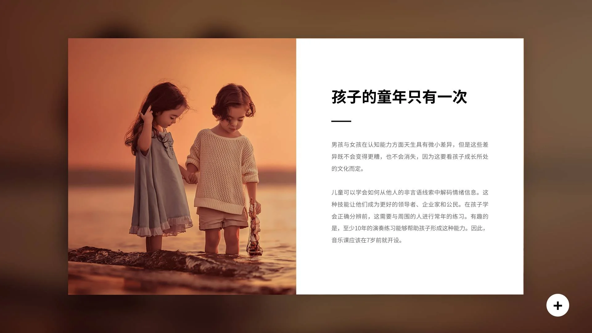 使用動畫對當前圖片進行模糊化處理,再添加一個半透明的重色蒙版遮罩,最後直接將你的排版放上去展示即可。
