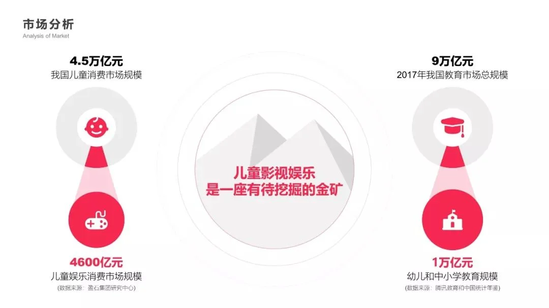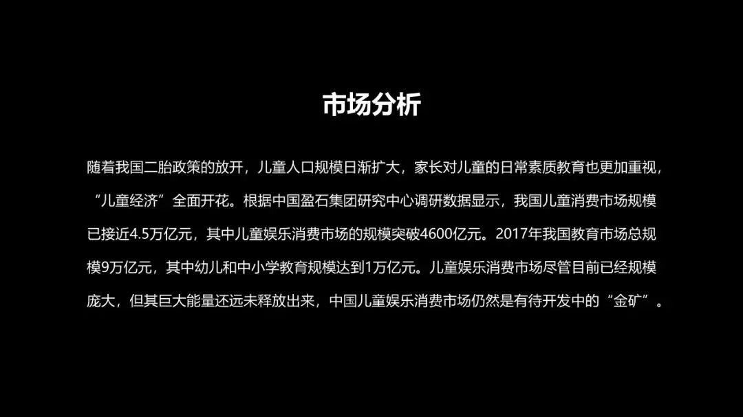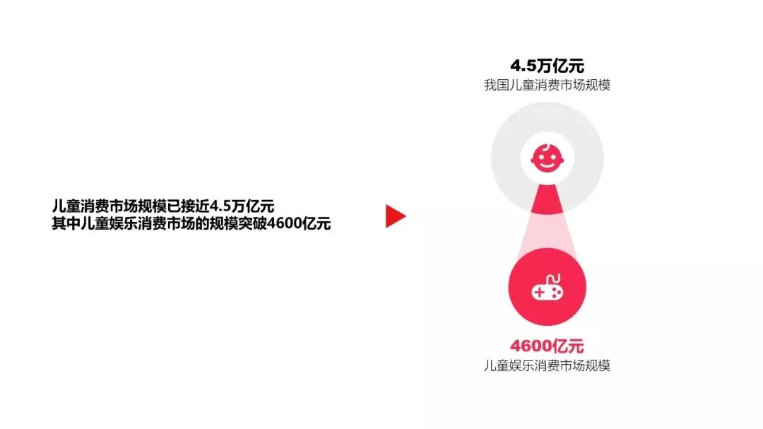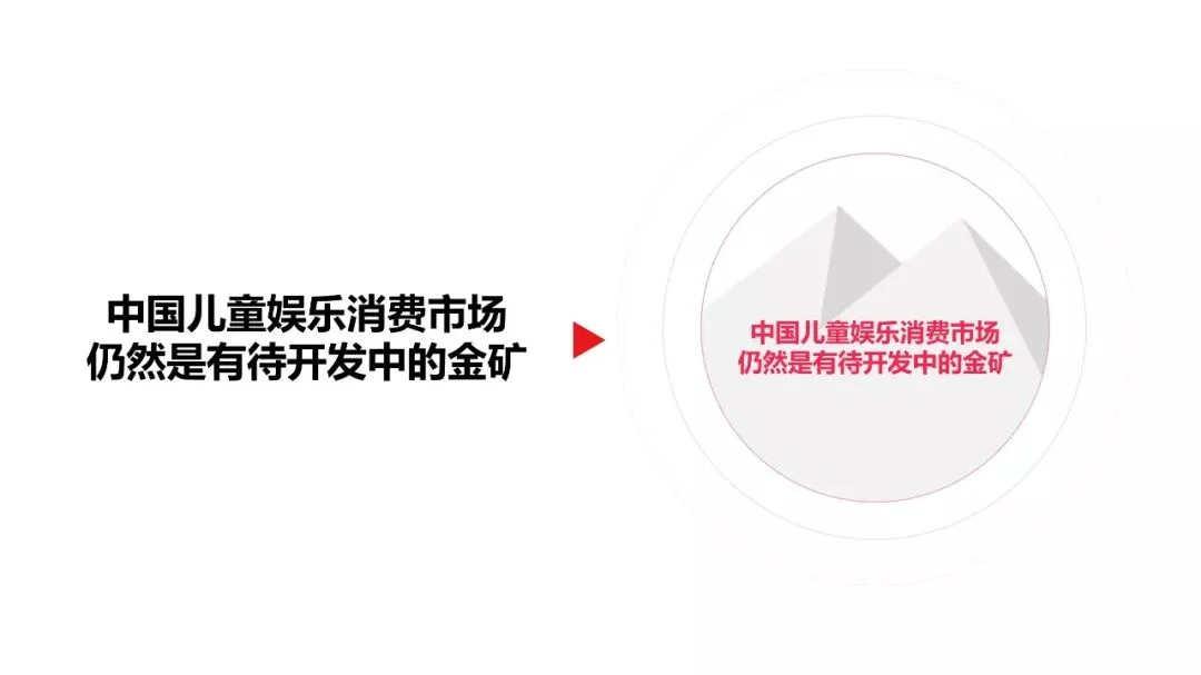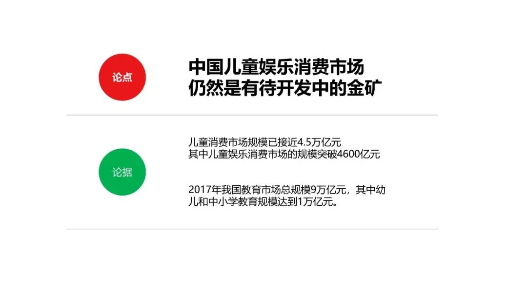 首先是論點的呈現設計。從文案分析可以知道,這裡想要表達的是<兒童消費市場是一座金礦>。