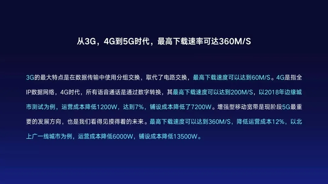 依舊是數據圖表頁,文案內容如下,主要講了從3G到5G的下載速率變化: