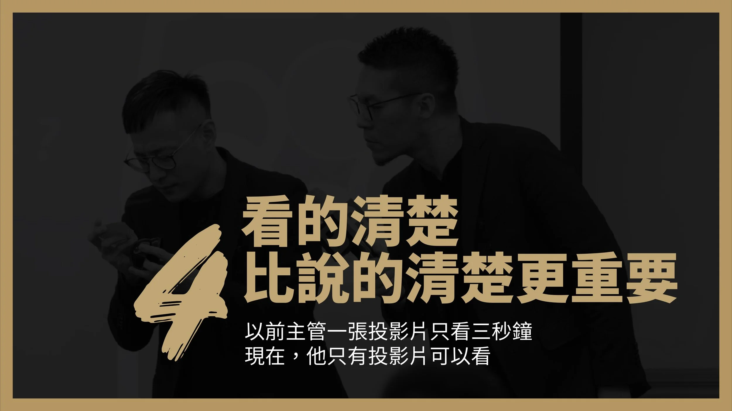 由上述的例子中,我們可以得到一個結論 : 簡報上看到重點,比聽到容易。簡報中要聽到重點其實門檻相當高,因其取決於簡報者的個人的邏輯與表達能力。