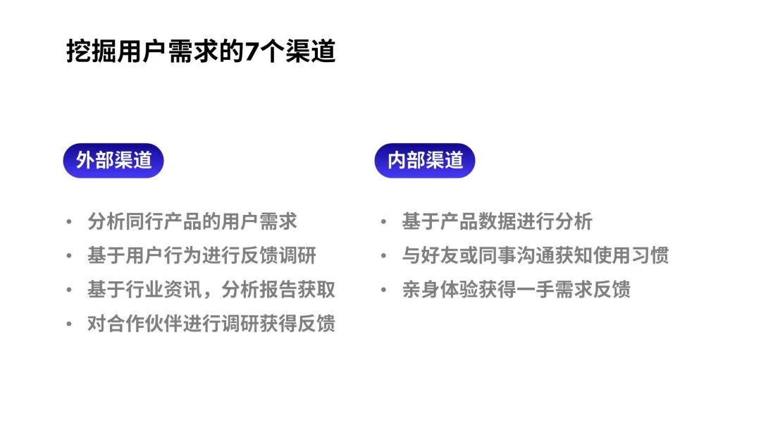 這張頁面的信息梳理,相對簡單,因為按照前面提到的信息拆解法,我們可以把這 7 個渠道,拆分為內、外部渠道: