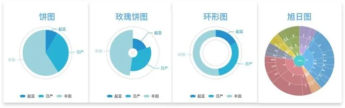 2)玫瑰餅圖。對比不同類別的數值大小。