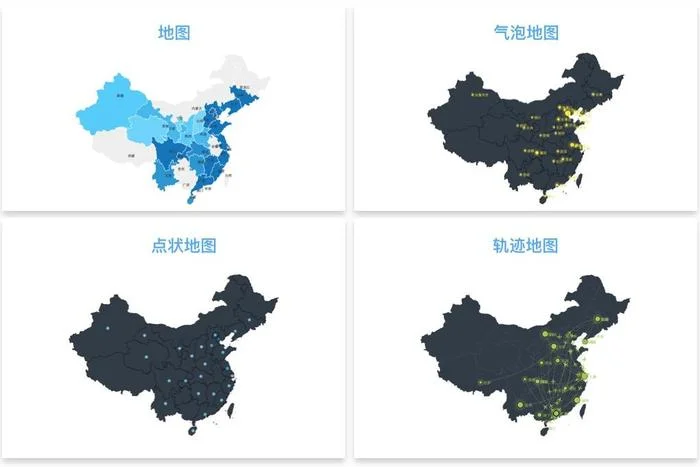 相似圖表:1)氣泡地圖。用氣泡大小展現數據量大小。