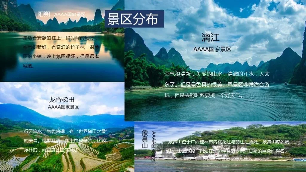 整個版面使用了並列式的排版,每個要點之間的留白保持一致。當介紹到其中某一點時,可以在要點下方添加深色色塊進行標注,並添加上其他圖片配合解釋。