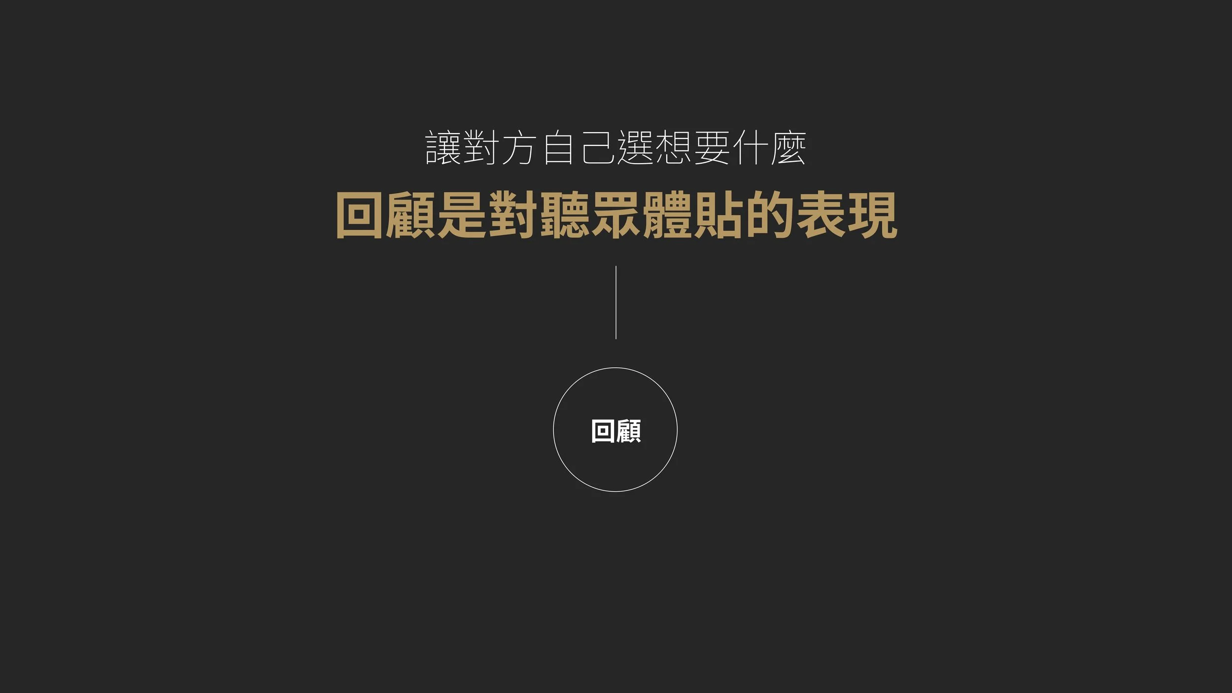 主管、老闆或是重要客戶,這些人一天不只聽一場簡報,很難對每件事留下印象。簡報結尾時幫聽眾做回顧,強化重點,也引導聽眾做回應。