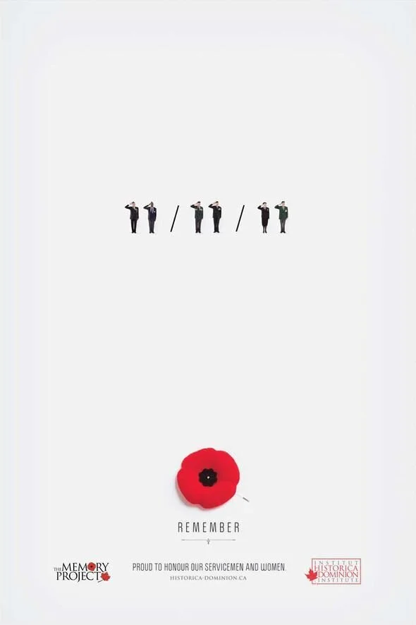 2011年11月11日,加拿大國防部發起一項運動支持 The Memory Project 向士兵致敬。陰沈的灰色和大量的空白帶出士兵離去的空無感,僅使用紅色為唯一亮色,以戲劇化的視覺增強觀眾的敬畏之心。