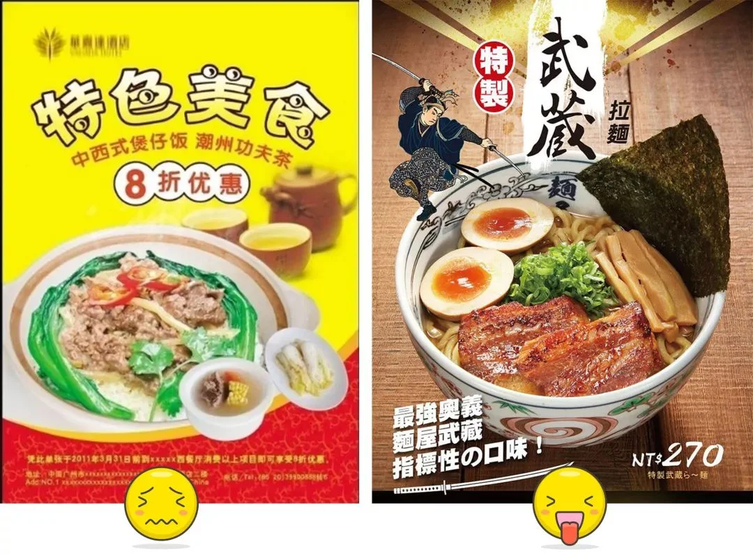 你逛商場時,商家為了促銷,會發各種DM,我們會通過DM當中產品的「誘人」程度而做出選擇,比如這兩張面館的DM,你會選擇去哪家吃飯呢?