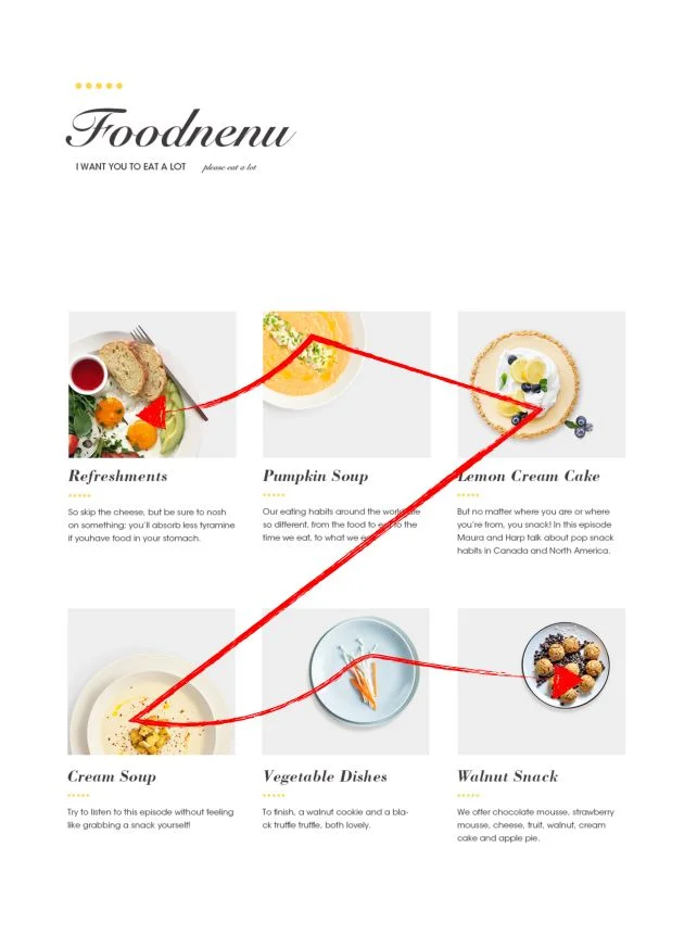 第二,放置圖片時要意識到視線移動,視線在橫排時候是從左至右Z字形移動,竪排時是從右上到左下N字形移動,要意識到這種移動規則,人的閱讀習慣來誘導視線,才能做出更好的版面。