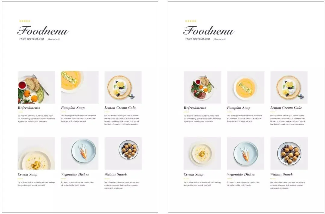 如果有一些同類圖片,這裡以這組美食圖片為例,把它們編排到版面中: