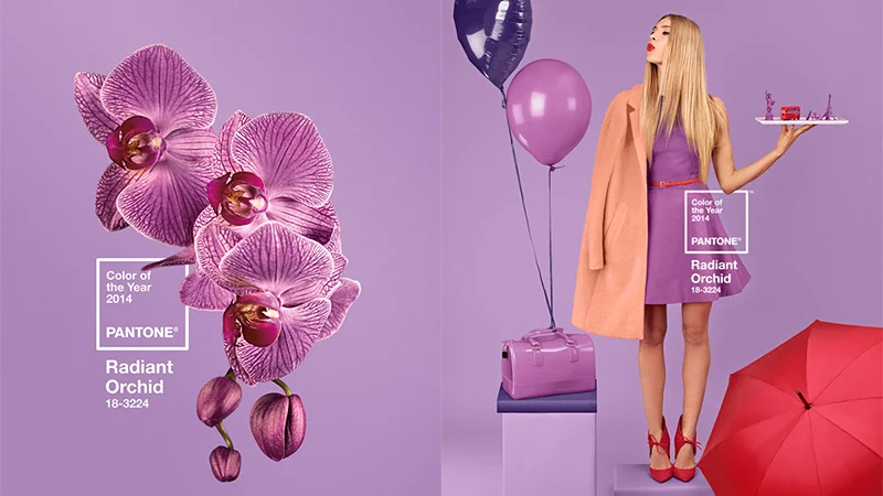 閃耀的蘭花(Radiant Orchid)——這是2014年的代表色的正式名稱,許多設計師已經在自己的項目中採用了這種色彩。彩通已經創造了16種堪稱標誌性的色彩/圖像,並且涵蓋了與之相關的時尚元素。
