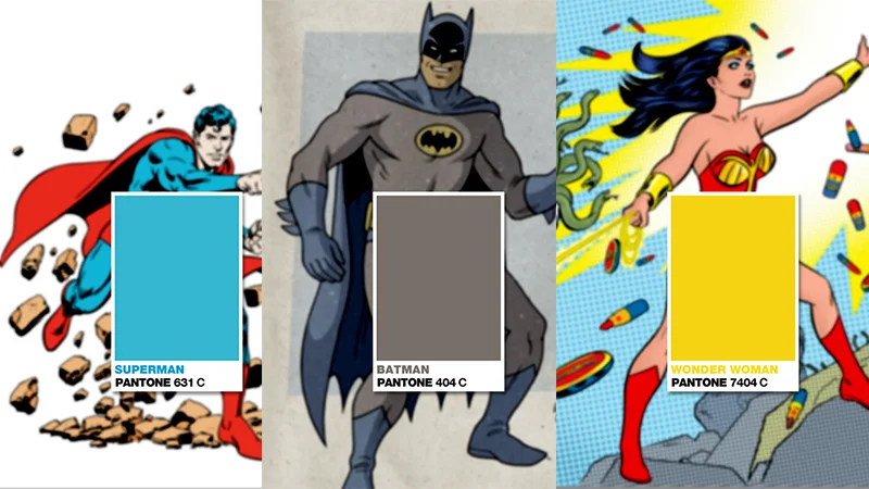 同第九個案例一樣,設計師同樣打算從超級英雄們的標誌性服裝上提取顏色,製作成彩通色標。唯一不同的是,案例9用的是漫威的英雄,而這個用的是DC的超級英雄。