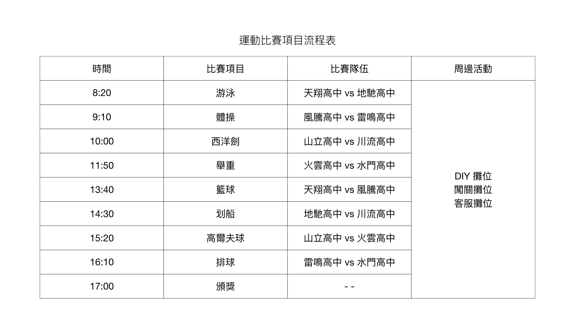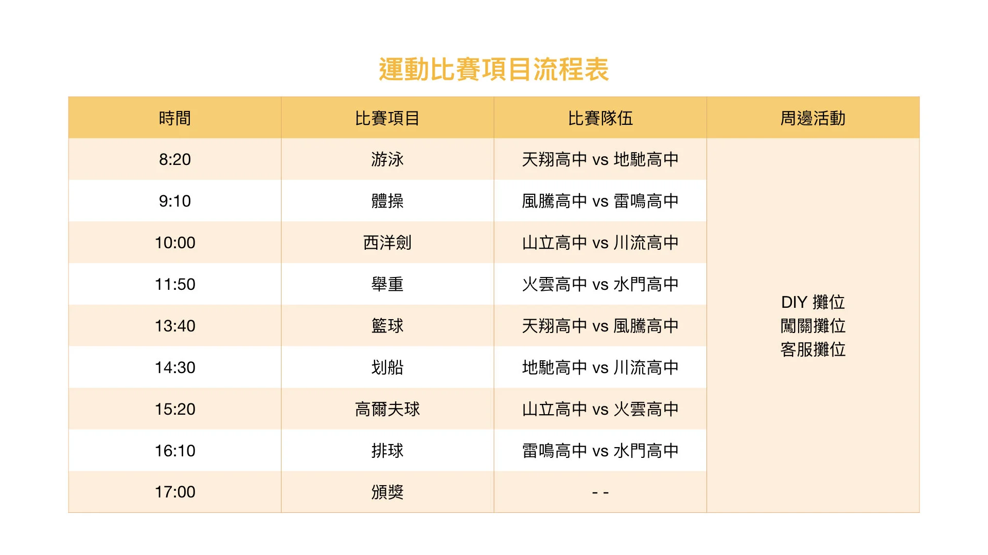 接著我們把每個項目的時間與比賽隊伍的訊息都補上去:
