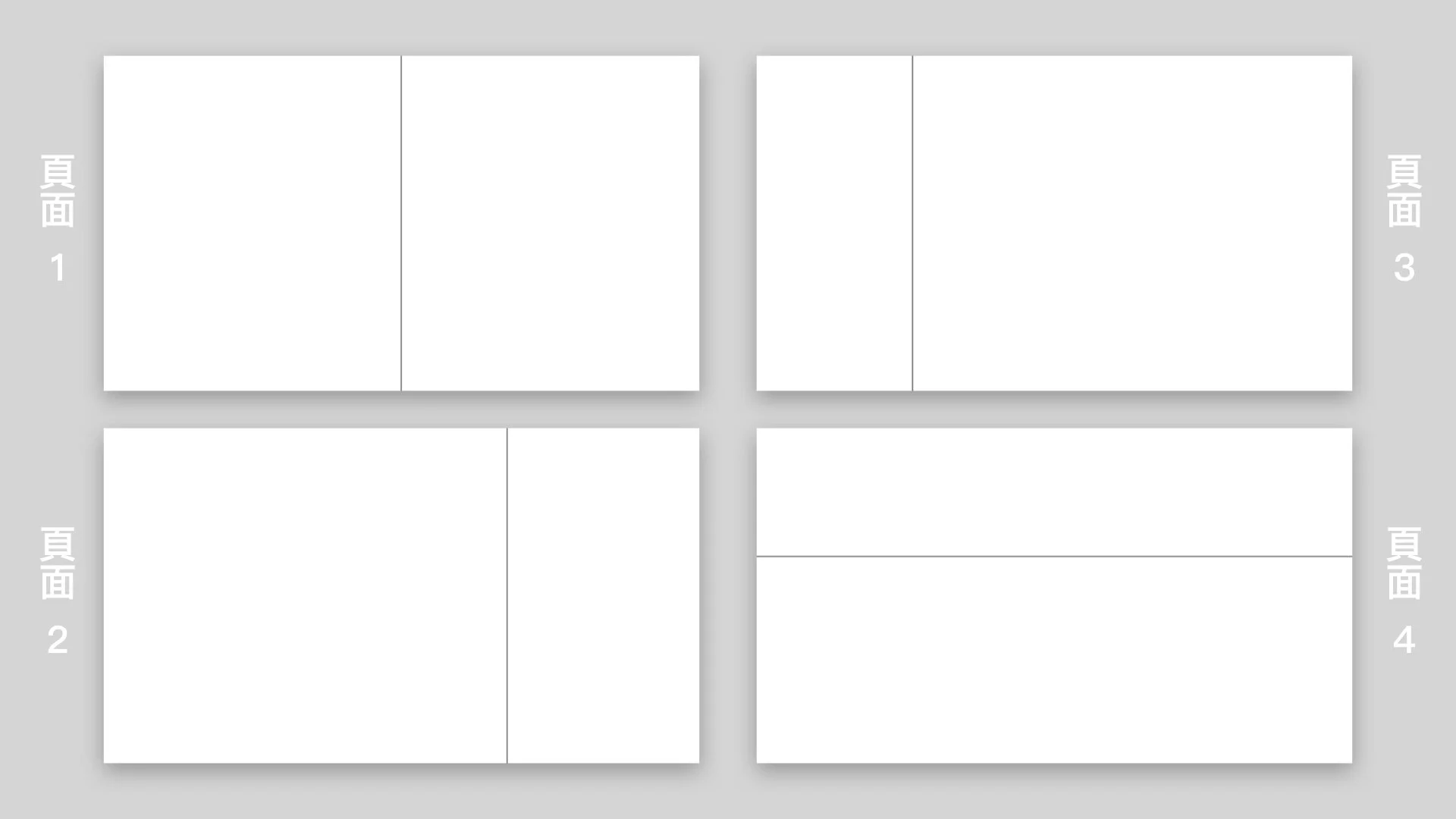 這樣我們就順利完成四種排版了,是不是非常容易呢?不只如此,「一刀切」的切法也不一定要是直直的切,我們也可以切成斜線或曲線:
