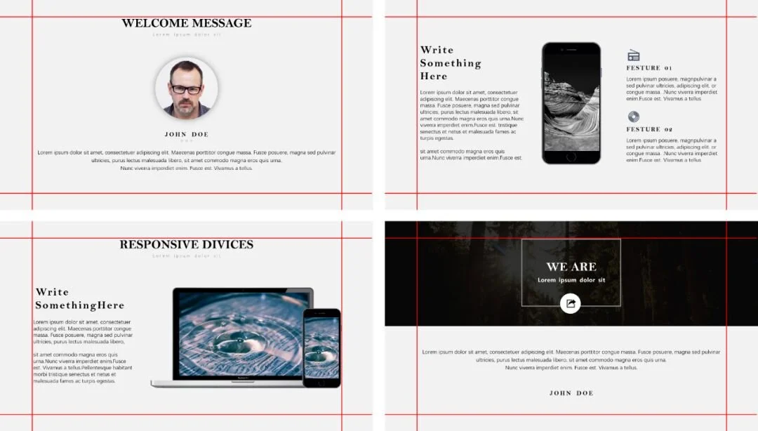 其實你只需要在 PPT 中拉出四條參考線,規定好 PPT 的頁邊距,這種擁擠得令人窒息的情況就能緩解很多: