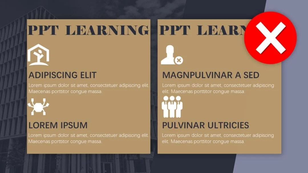 「保持元素與元素之間的間距」這句話其實更好理解,你只需要記住:在排版 PPT 時,不要讓任意兩個元素之間靠得太近即可。