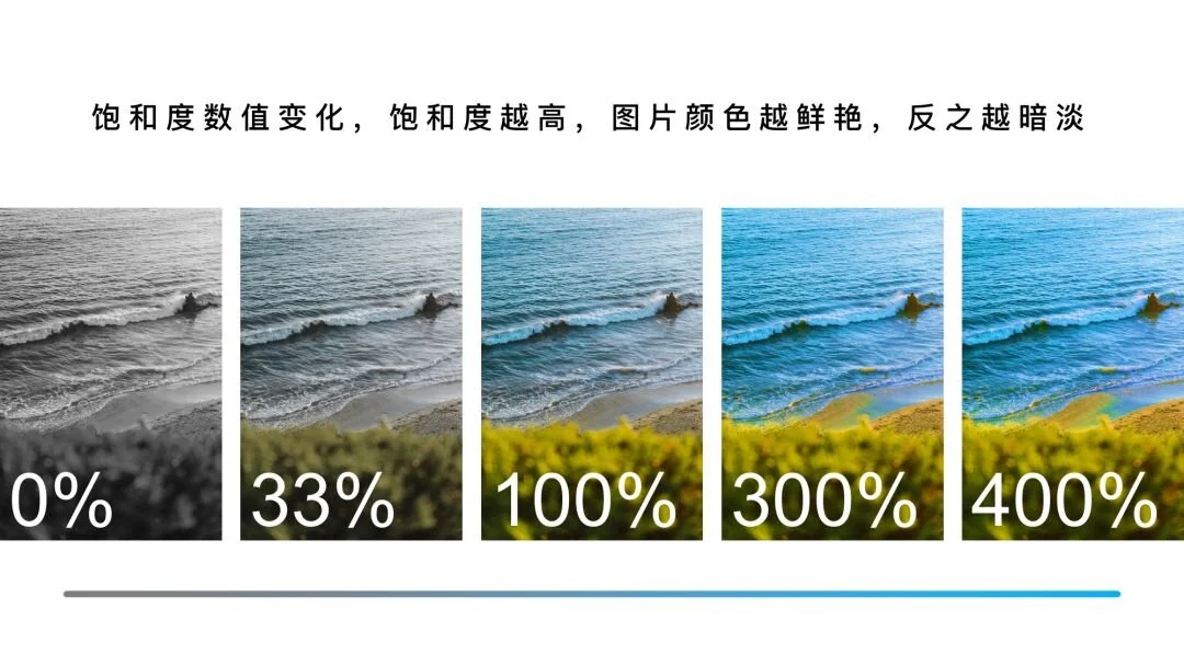 簡單點說,就是飽和度越高,圖片顏色越鮮艷,反之,就沒有了彩色。大家可以來看下這張圖片: