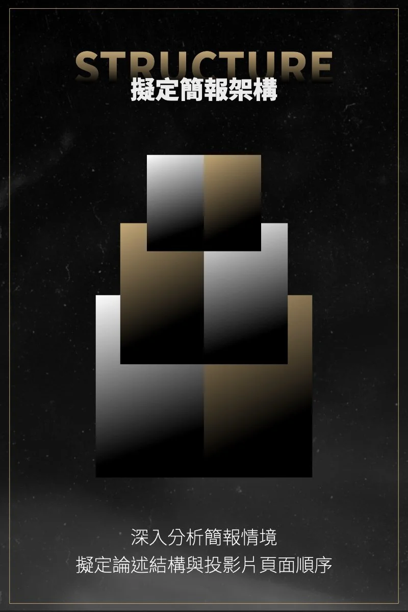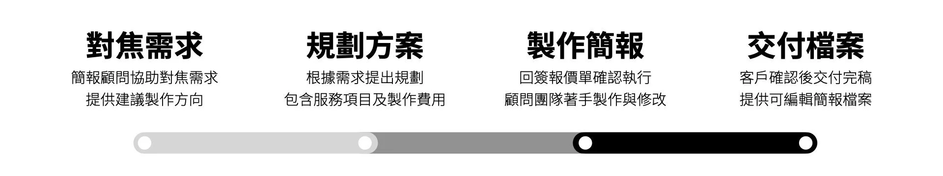 從擬定簡報架構、梳理內容文字、簡報視覺設計到登台演説諮詢