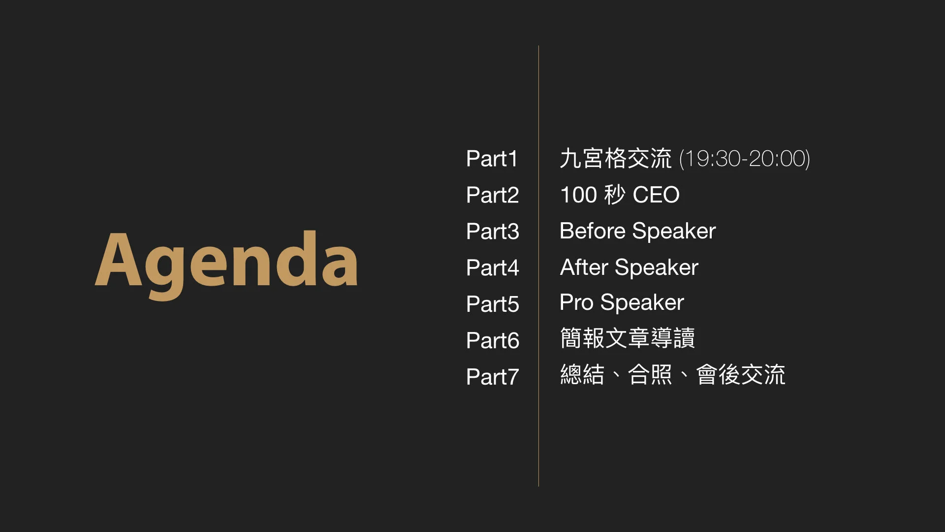 而在下個月的聚會,Before Speaker 將在與三位駐場簡報人一對一交流 #結構企劃 #視覺呈現 #訊息傳遞 後再次登台,成為 After Speaker。我們希望通過定期的聚會讓每一位參與的夥伴們都能看到簡報溝通力提升後,帶來的改變力量。