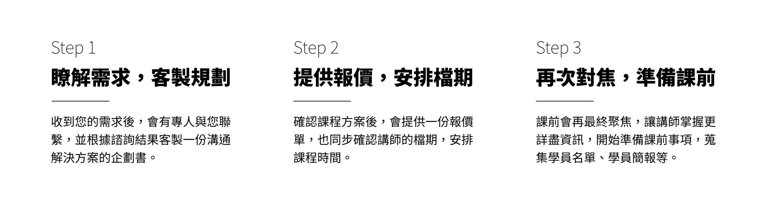 提供三種授課形式,幫助學員提升職場溝通能力,大幅提升企業溝通成效。